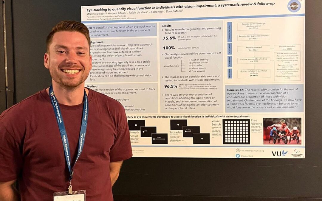 Ward is van origine een Bewegingswetenschapper, maar hij is al eerder werkzaam geweest voor Oogheelkunde als onderzoeksassistent. Deze twee onderzoeksgebieden kwamen samen in zijn promotieonderzoek bij het Internationaal Paralympisch Comité. Daar onderzocht hij hoe Paralympische atleten met een visuele beperking hun resterende zicht gebruiken tijdens sport. Vraag gerust meer hierover als je hem tegenkomt in de wandelgangen!
